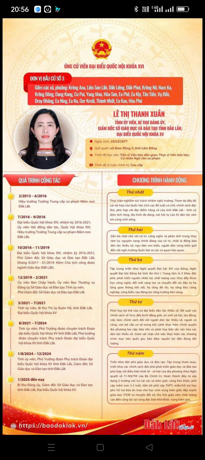 Đ/C LÊ THỊ THANH XUÂN, GIÁM ĐỐC SỞ GD-ĐT ĐẮK LẮK – ỨNG CỬ VIÊN ĐẠI BIỂU QUỐC HỘI KHÓA XVI